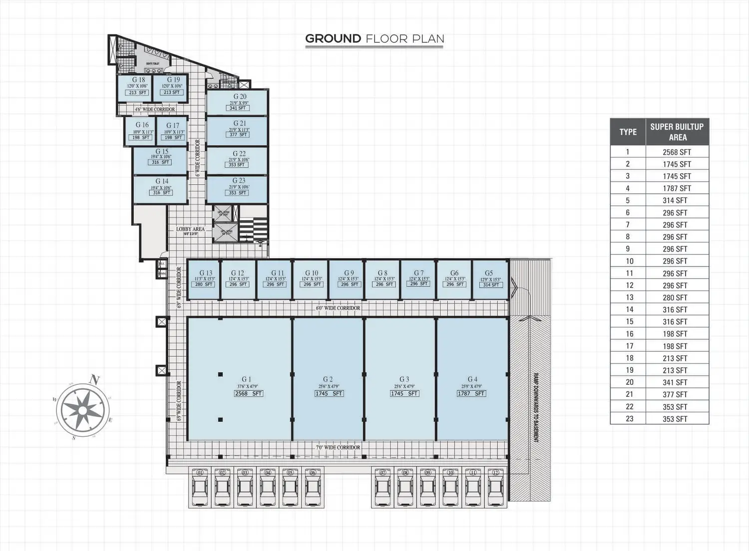 Our complex's vibrant ground floor boasts a spacious layout and stylish architecture, perfect for retail outlets, cafes, and captivating storefronts that attract visitors from every angle.